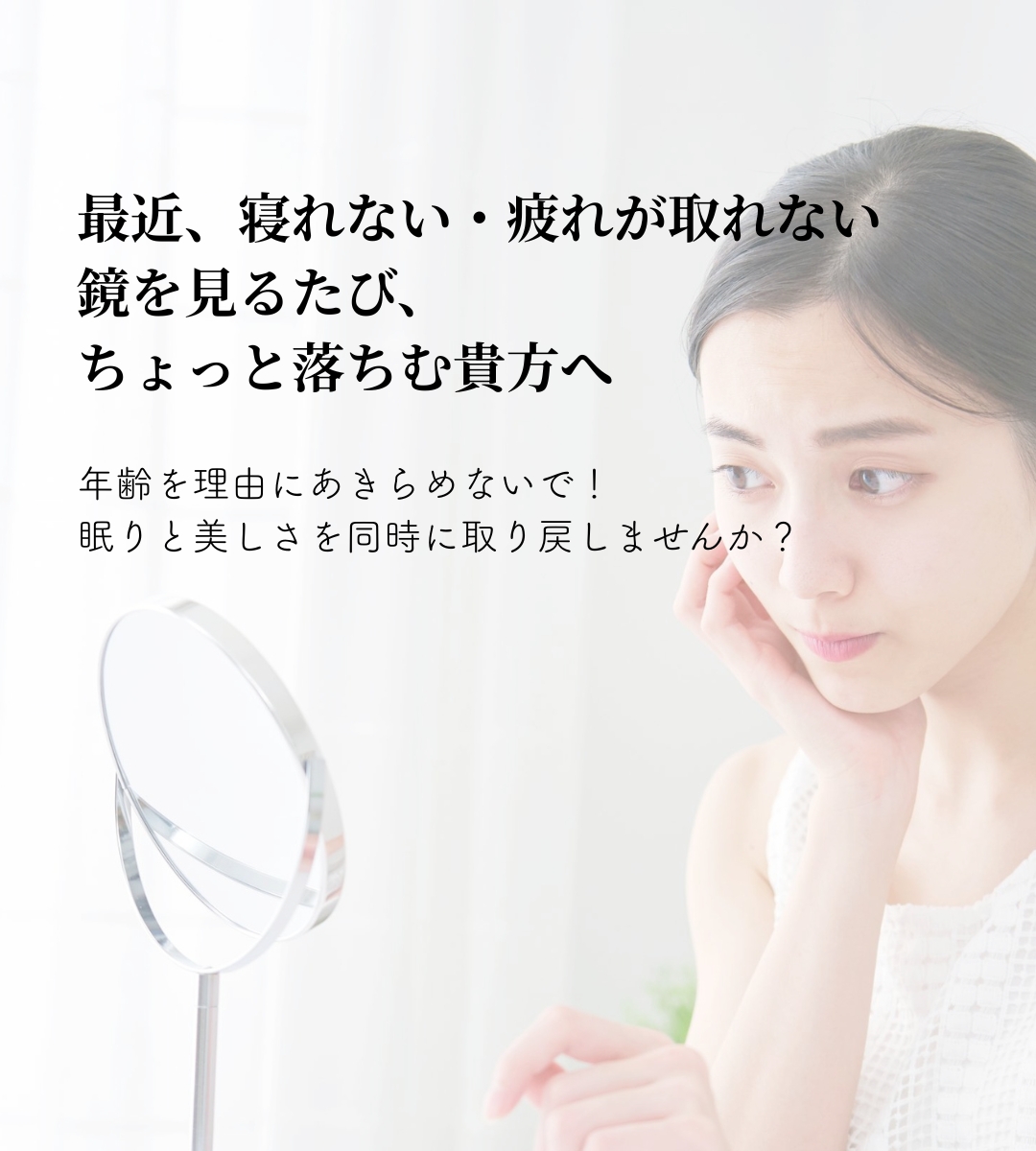 あなたが望む年齢に負けない、快眠とキレイを手に入れるお手伝いを、誠心誠意致します。